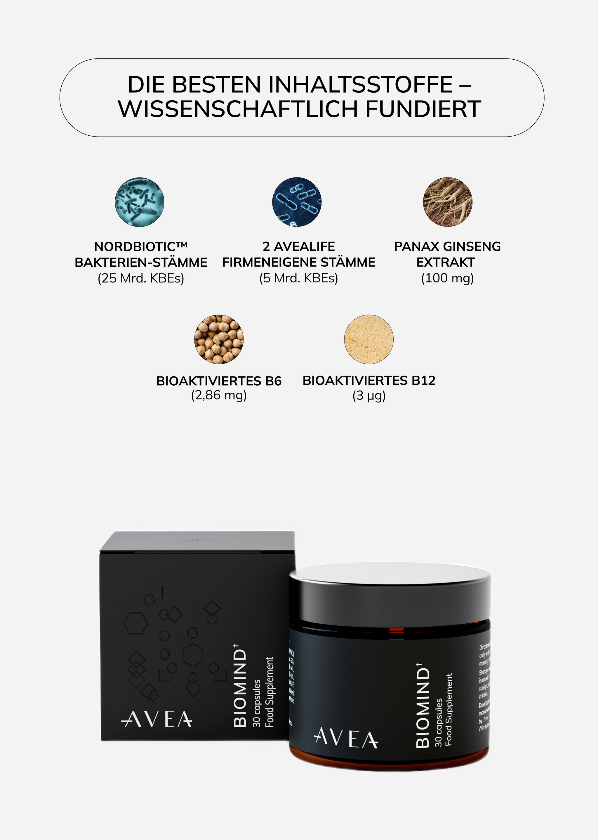 Bei AVEA legen wir Wert auf Transparenz und Qualität. Wir produzieren in der Schweiz und beziehen unsere Inhaltsstoffe weltweit, wobei wir uns auf eine ausgezeichnete Bioverfügbarkeit und hohe Aktivität durch standardisierte Pflanzenextrakte konzentrieren. Jede Charge wird streng doppelt auf Reinheit durch ein unabhängiges Schweizer Labor getestet. Wir gehen über die Standardkennzeichnung hinaus, um detaillierte Informationen bereitzustellen und unser Kundenservice-Team steht für alle Fragen oder Anfragen zu Testergebnissen zur Verfügung.